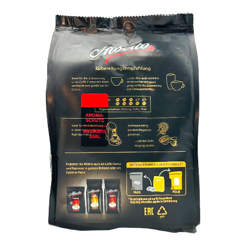 Alberto Caffe Crema Koffiepads combineren Duitse kwaliteit met eeuwenoude koffietradities. Deze zorgvuldig samengestelde blend van geselecteerde koffiebonen is speciaal ontwikkeld voor pad-koffiemachines en levert een authentieke caffe crema ervaring. De 36 pads bevatten 100% pure koffie zonder toevoegingen, wat zorgt voor een natuurlijke en rijke smaak.