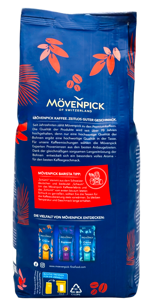 Ervaar de Zwitserse koffie-excellence met Mövenpick Caffè Crema Schümli Bonen. Deze premium 100% Arabica blend combineert traditioneel vakmanschap met een romige textuur en rijke smaak. Perfect voor een luxueuze caffè crema ervaring thuis.