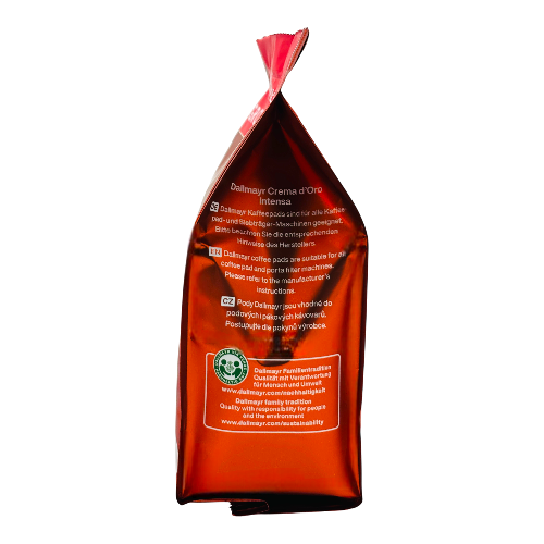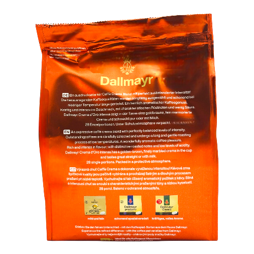 Dallmayr Crema d'Oro Intensa koffiepads brengen de eeuwenoude koffietradition van het prestigieuze Duitse delicatessenhuis naar uw keuken. Deze premium blend van zorgvuldig geselecteerde Arabica en Robusta bonen wordt medium gebrand voor een perfecte balans tussen kracht en zachtheid. Met 28 koffiepads per verpakking biedt dit product gemak zonder concessies aan kwaliteit, ondersteund door Dallmayr's toewijding aan duurzame sourcing en ethische koffieproductie.