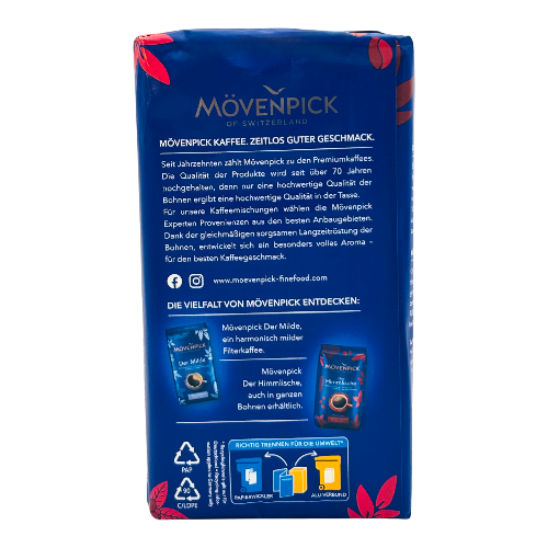 Ervaar de hemelse smaak van Mövenpick Der Himmlische Gemalen - een verfijnde Zwitserse koffieblend met rijke chocoladetonen, subtiele nootaccenten en fruitige hints. Deze premium medium roast combineert bonen uit drie continenten tot een harmonieuze smaakervaring die zowel koffiekenners als casual drinkers bekoort. Perfect voor filtermethoden en een lange, bevredigende nasmaak.