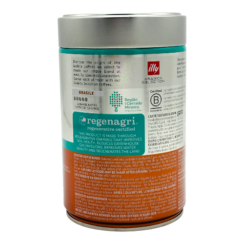Illy Brasile coffee beans are sourced from the best regions of Brazil, where unique climatic conditions ensure exceptional Arabica quality. These beans are washed processed and medium roasted according to Illy's traditional Italian methods, resulting in a bright and balanced flavor. The patented pressure packaging system guarantees optimal freshness and quality.