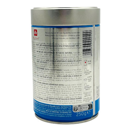 Discover the refined elegance of Illy's Decafeinato - a premium decaffeinated blend that retains all the richness of traditional Italian coffee. With less than 0.1% caffeine and full of chocolate and caramel notes, perfect for every day.