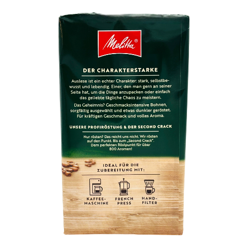 Experience the essence of German coffee tradition with Melitta Auslese Klassisch. This premium blend of carefully selected Arabica and Robusta beans from Africa and South America offers a rich, full-bodied flavor with subtle sweetness and nutty undertones. Perfect for filter coffee and French Press - a classic choice that makes every coffee moment special.