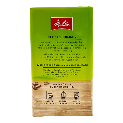 Experience the smooth elegance of Melitta's Auslese Klassisch Mild - a premium blend that combines more than a century of German coffee expertise with carefully selected beans. This mild yet rich coffee offers a perfect balance of accessibility and refinement, with subtle notes of honey, milk chocolate and toasted nuts. Ideal for coffee lovers who enjoy a smooth, balanced taste without bitterness.