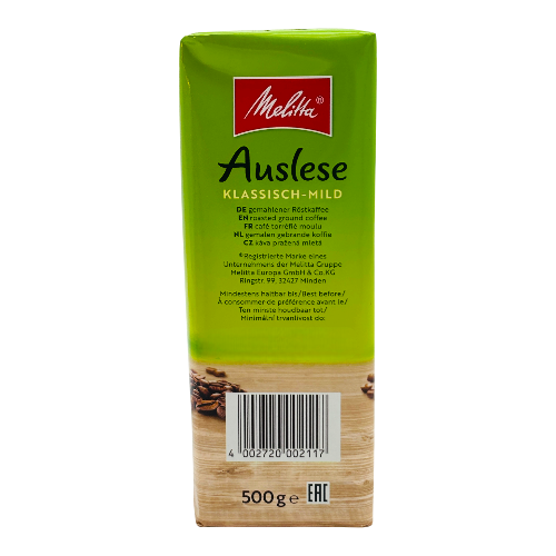 Melitta's Auslese Klassisch Mild Ground Coffee is a premium blend that combines the best of German coffee expertise since 1908 with carefully selected coffee beans. This mild yet rich blend is specially developed for coffee lovers who prefer a smooth, balanced taste without the bitterness of stronger coffees. The mild roasting profile preserves the beans' natural flavors and ensures consistent quality that reflects Melitta's reputation for excellence.