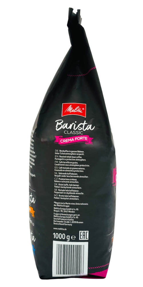 Melitta's Barista Classic Crema Forte combines more than a century of German coffee expertise with premium Arabica and Robusta beans. Designed specifically for a rich, dense crema, this medium-dark roast blend offers a complex flavor profile with notes of dark chocolate, roasted nuts and subtle caramel. The patented roasting process preserves natural oils and flavors for consistent results.