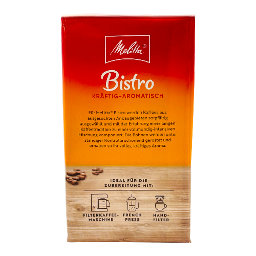 Melitta Bistro Kräftig Aromatic Ground Coffee embodies more than a century of German coffee expertise. This carefully crafted blend combines premium coffee beans with a medium-dark roast for a rich, full-bodied flavor. Founded in 1908 by the inventor of the coffee filter, the Melitta brand guarantees consistent quality and innovation in every package.