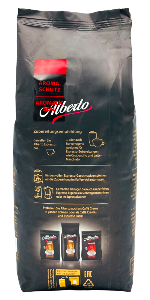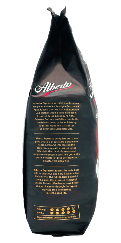 Alberto Espresso Bonen combineren traditioneel Italiaans vakmanschap met moderne kwaliteitscontrole. Deze zorgvuldig samengestelde blend van Arabica en Robusta bonen wordt gebrand tot een medium-donker profiel, wat resulteert in een complex smaakpalet vol donkere chocolade en geroosterde noten. Het merk Alberto staat al generaties voor duurzame koffieproductie en ethisch verantwoorde sourcing.