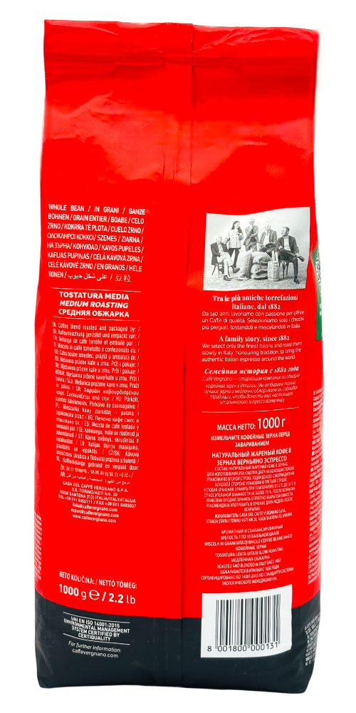 Caffè Vergnano selecteerde deze premium blend van Arabica en Robusta bonen uit de beste koffieproducerende regio's wereldwijd. Geteeld op hoogtes van 1200-2000 meter en gewassen verwerkt, worden de bonen gebrand volgens een traditionele, langzame methode die al sinds 1882 wordt toegepast. Het medium-dark brandprofiel accentueert de natuurlijke smaken en creëert een perfecte balans tussen zoetheid en bitterheid.