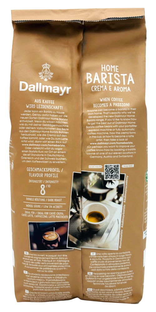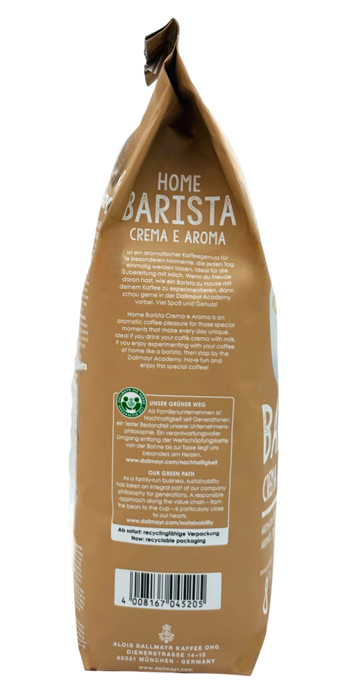 De Home Barista Crema e Aroma van Dallmayr combineert eeuwenoude Duitse koffietradities met moderne brandtechnieken. Deze premium blend van 100% Arabica bonen wordt medium-dark gebrand voor een optimale balans tussen aroma en body. Dallmayr's expertise, opgebouwd sinds de 18e eeuw, garandeert consistente kwaliteit en duurzame productie.