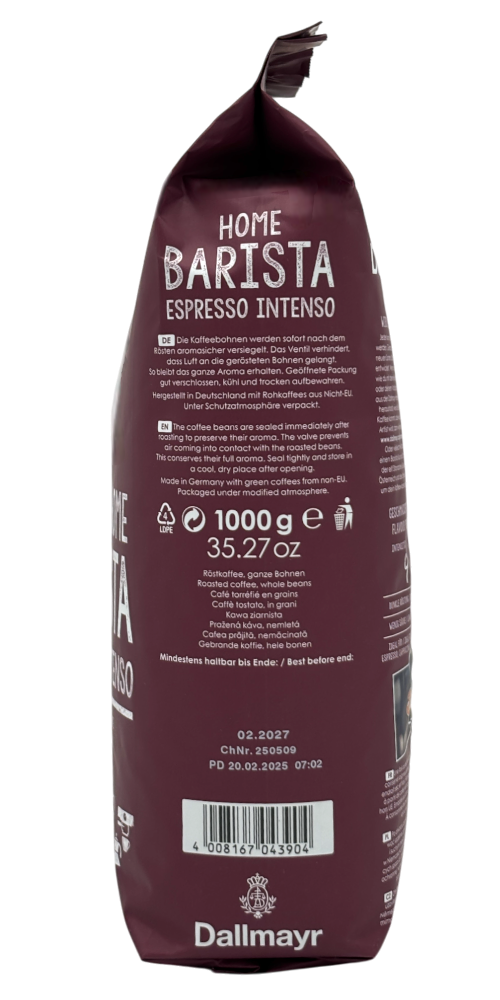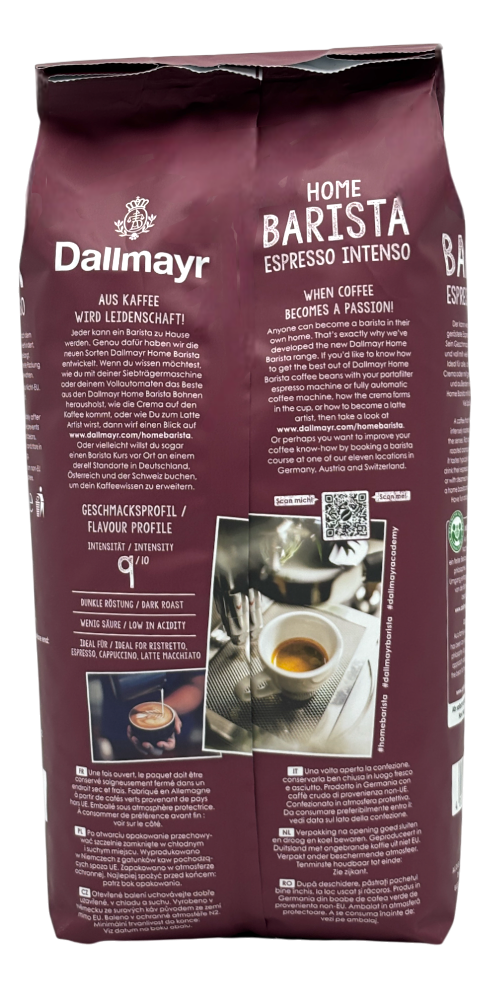 Ontdek de krachtige elegantie van Dallmayr Home Barista Espresso Intenso - een premium blend van Arabica en Robusta bonen. Donker gebrand voor intense smaak, rijke crema en complexe aroma's van chocolade en noten. Perfect voor de thuisbarista die geen compromissen sluit op kwaliteit.