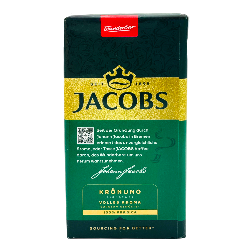 Jacobs Krönung Gemalen belichaamt meer dan 125 jaar Duitse koffie-expertise in elke kop. Deze premium blend combineert zorgvuldig geselecteerde Arabica en Robusta bonen uit Afrika, Azië en Zuid-Amerika, medium geroosterd voor een uitgebalanceerde smaak die zowel mild als vol is. De naam "Krönung" betekent letterlijk "kroning" en weerspiegelt de koninklijke kwaliteit van deze bijzondere koffie.