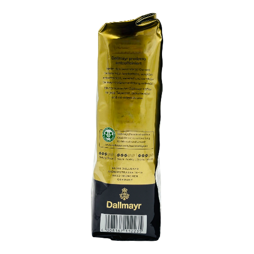 Dallmayr Prodomo Entcoffeiniert Bonen combineren 300 jaar Duitse koffietradition met moderne ontkoffeïneringstechniek. Het medium brandprofiel zorgt voor een uitgebalanceerde smaak met rijke noten- en chocoladetonen, terwijl het zorgvuldige proces alle natuurlijke aroma's behoudt.