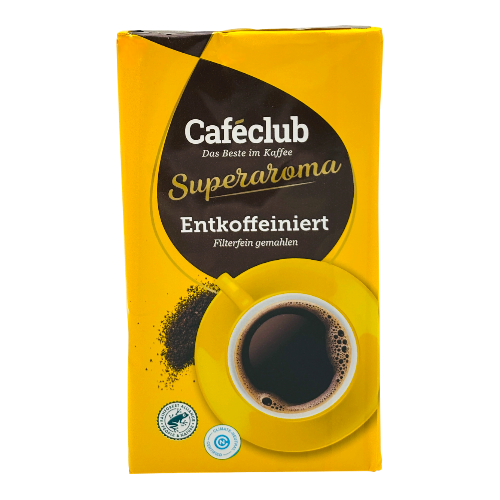 Ontdek de Superaroma Entkoffeiniert Gemalen van Cafeclub - een premium cafeïnevrije koffie die bewijst dat decaf niet hoeft in te boeten op smaak. Deze zorgvuldig samengestelde blend van Arabica en Robusta bonen uit drie continenten biedt een complexe smaakervaring vol geroosterde noten en zachte chocoladetoetsen. Medium gebrand en Rainforest Alliance gecertificeerd voor de bewuste koffieliefhebber die kwaliteit en duurzaamheid waardeert.